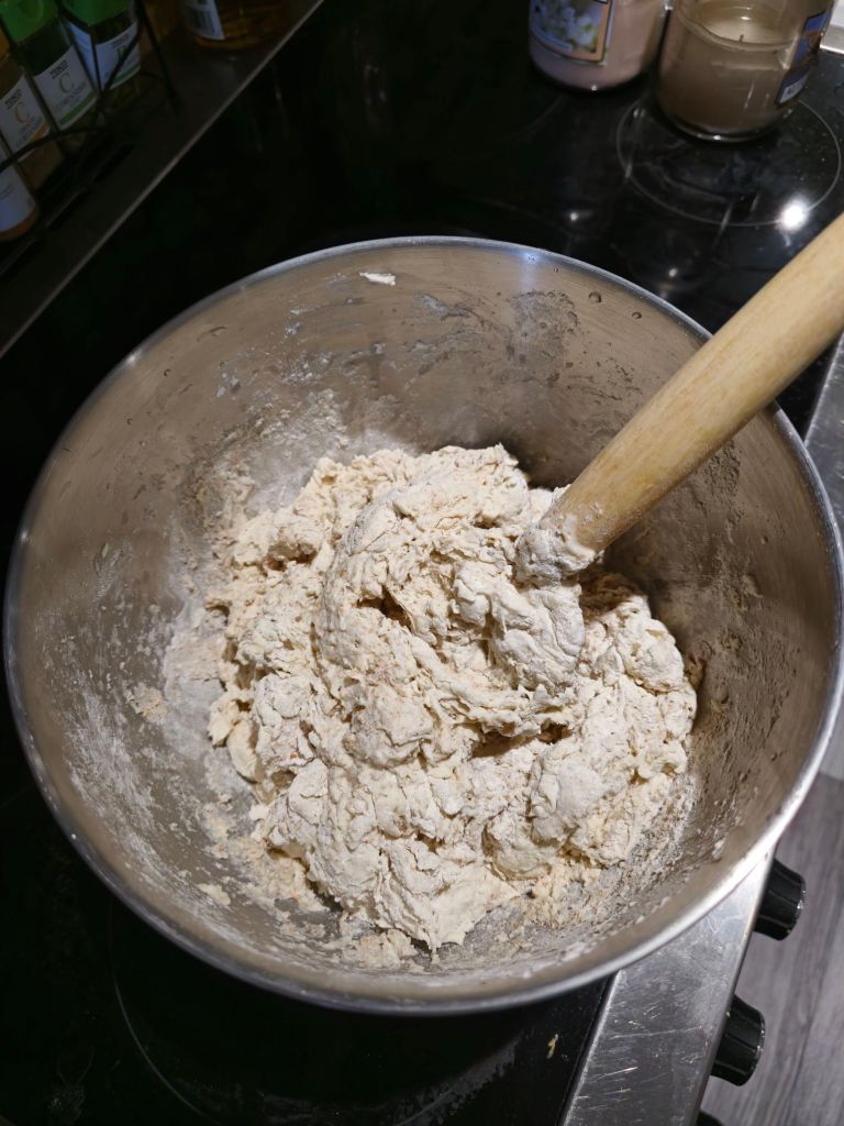 The process started yesterday when I woke up my dormant starter, feeding it a couple of times to get it strong and bubbly again. It’s like bringing an old friend back to life! With the starter ready, I mixed up the dough—a satisfying job in itself. It’s all about the feel of the dough, the stretch, and the patience of letting time work its magic.